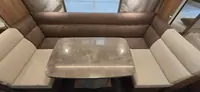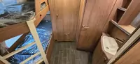 Disposition spacieuse : Convient pour 6 à 7 personnes avec une chambre pour enfants (lits superposés), un lit transversal à l’avant et un grand salon rond au centre.