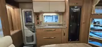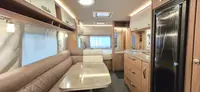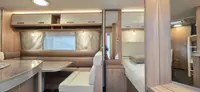 Confort : Équipé du chauffage Truma, chauffe-eau, grand réfrigérateur (133L) et cuisinière à 3 feux.