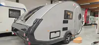 Le t@B 400 BASIC est la caravane idéale pour les amateurs de voyages compacts, pratiques et stylés, sans compromis sur la qualité. ✅ Compacte et légère Facile à tracter, même avec des véhicules plus petits, et très maniable sur la route comme au camping. ✅ Design iconique et intemporel Son look rétro emblématique attire immédiatement le regard tout en offrant un confort moderne. ✅ Aménagement intelligent Malgré sa taille compacte, le t@B 400 propose un espace de vie bien pensé avec coin salon/couchage, cuisine fonctionnelle et rangements astucieux. ✅ Excellent rapport qualité-prix La version BASIC permet d’accéder à la qualité t@B à un prix très attractif. ✅ Fiabilité allemande Une construction solide et des matériaux durables pour une utilisation fiable et durable.