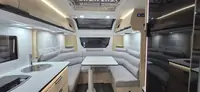 ✔ Grand lit central 150×200 cm pour un confort de sommeil incomparable ✔ Espace de vie lumineux grâce au skyroof et aux lanterneaux Heki ✔ Construction IRP : meilleure isolation, plus de solidité et résistance accrue aux intempéries ✔ Cuisine entièrement équipée avec four, réfrigérateur 140L, 3 feux et hotte aspirante ✔ Chauffage Truma Combi 6E pour un confort optimal en toute saison ✔ Technologie moderne : système Truma iNet + iBox, pilotage via smartphone ✔ Beaucoup d’espaces de rangement, dont 2 grands portillons extérieurs (100×40 cm) ✔ Stabilité et sécurité sur la route grâce à l’attelage anti-lacet AKS 3004 et aux amortisseurs renforcés