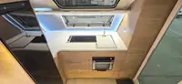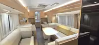 Ruime indeling: Grote leefruimte met comfortabele U-vormige zithoek en aparte slaapkamer. Licht en modern design: Panoramisch raam en veel natuurlijke lichtinval. Goede isolatie: Geschikt voor alle seizoenen dankzij hoogwaardige wand- en vloerisolatie. Complete keuken: 3-pits kookplaat, grote koelkast (140 L) en optionele magnetron. Comfortabele badkamer: Ergonomische badkamer met aparte douchecabine. Sterk chassis: AL-KO onderstel met stabilisator en schokdempers voor veilig rijden. Veel opbergruimte: Slimme kasten en extra bergruimte onder bedden. Voorbereid op technologie: Pre-installatie voor airco, Bluetooth audio en Adria MACH-systeem.