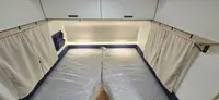 Twee enkele bedden voorin, om te bouwen tot een groot kingsize bed – ideaal voor comfort en flexibiliteit.