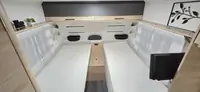 Uitvoering GRAPHITE; Grijze Titanium polyester zijwanden/ Velgen plus reservewiel/ Disselafdek wit/ Dakreling zwart/ Hordeur/ Deur met venster/ Verzwaarde uitdraaisteunen/ Comfortkussens «Sydney»/ TRUMATIC 3004 Gasverwarming/ Ringverwarming 12V / TV-steun/ Opbergtasjes/ Accu-voorbereiding